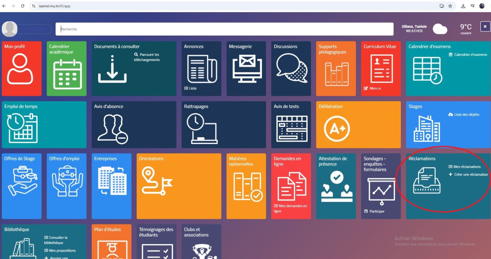 Les étudiants, enseignants et membres du personnel disposant d’un compte sur l’espace numérique de l’établissement (intranet/extranet) peuvent accéder à la rubrique « Réclamations » et y déposer directement leur demande.